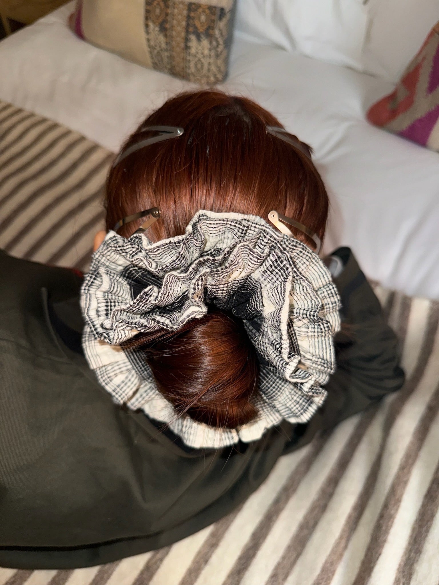 Inspired by the forests of Norfolk, England, the Norfolk hair tie collection embraces deep, earthy tones to showcase a natural, fresh style. Made from a blend of satin and fabric, it is soft yet structured, effortlessly capturing details without losing its relaxed
